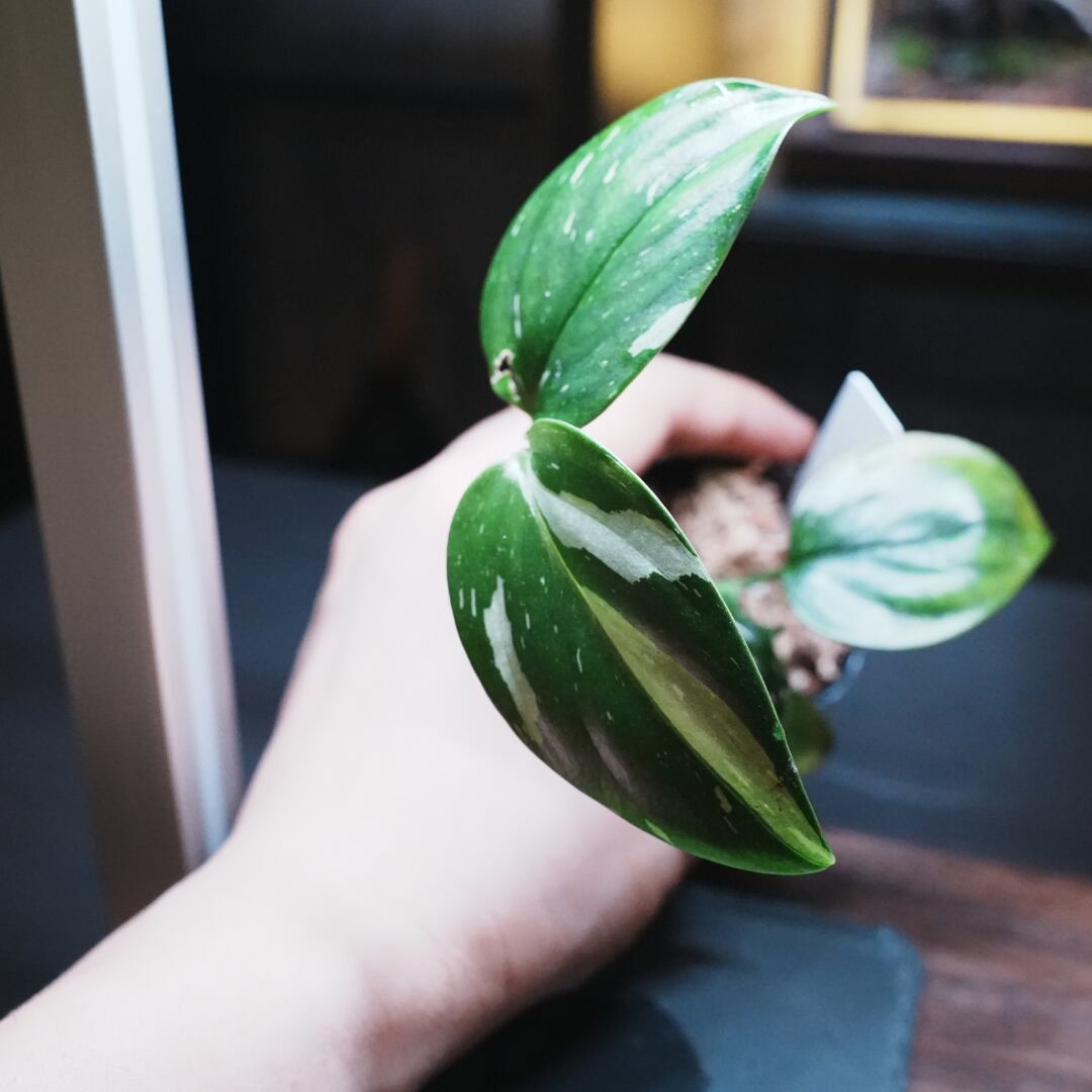 葉に白〜クリーム色の不規則な斑が入る希少なモンステラ
