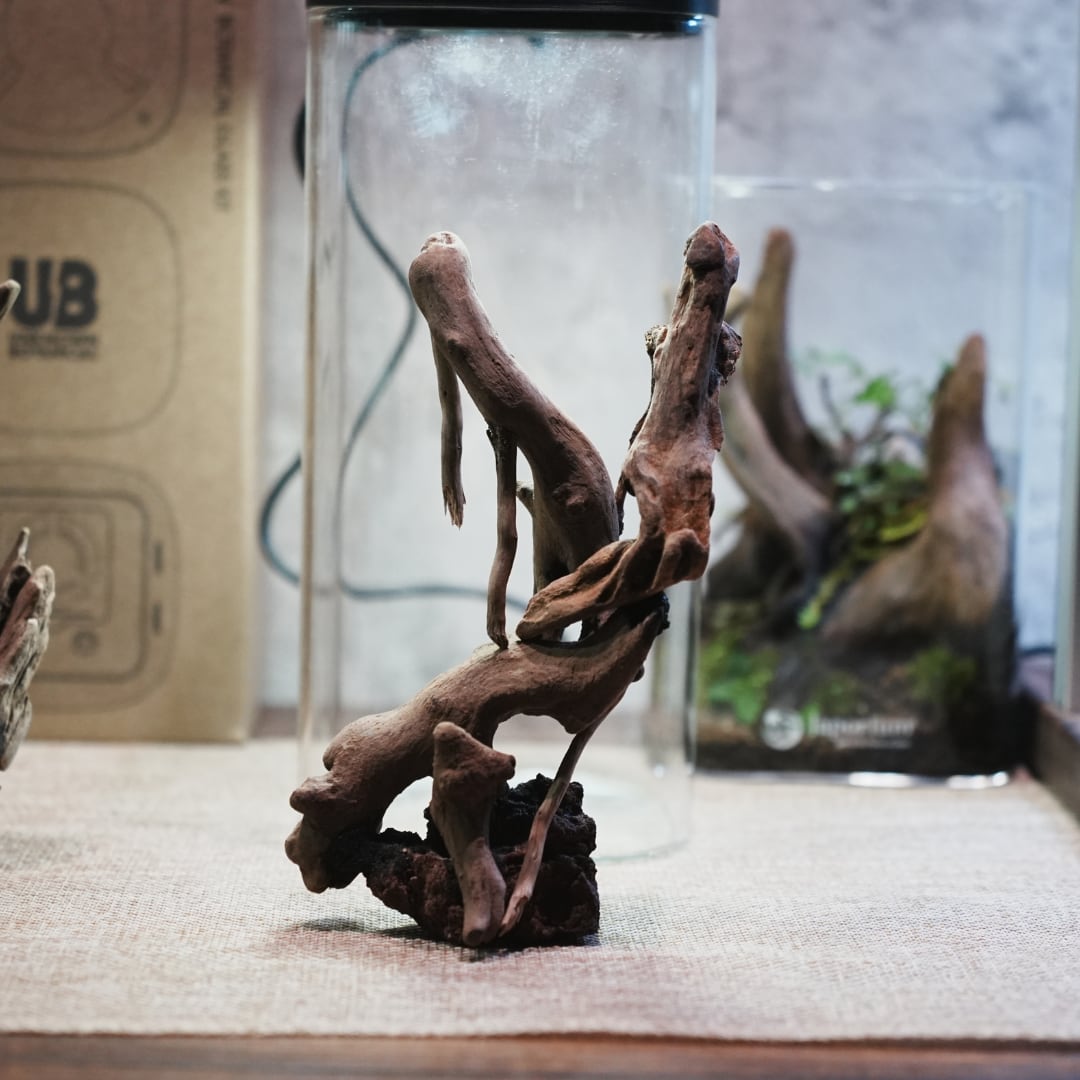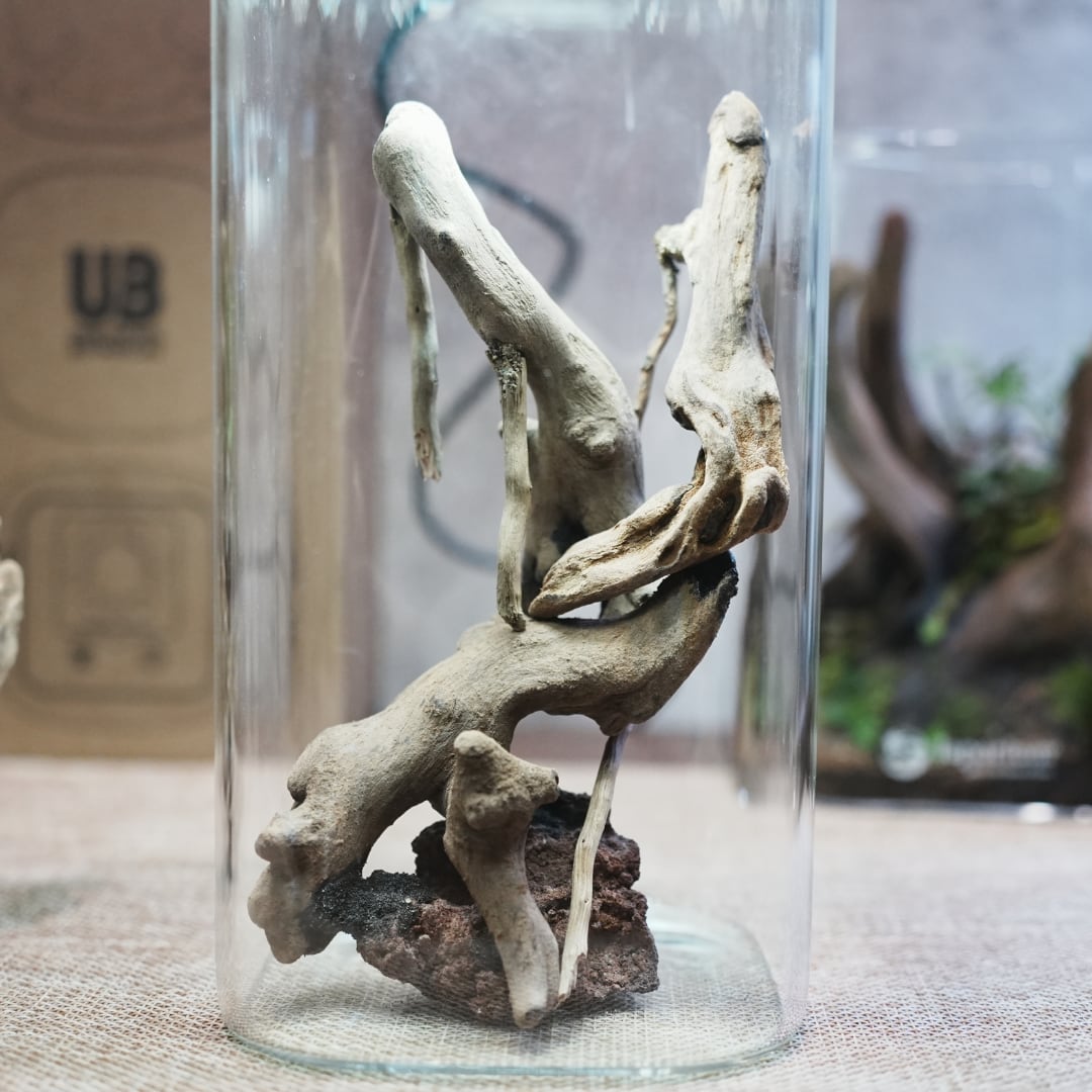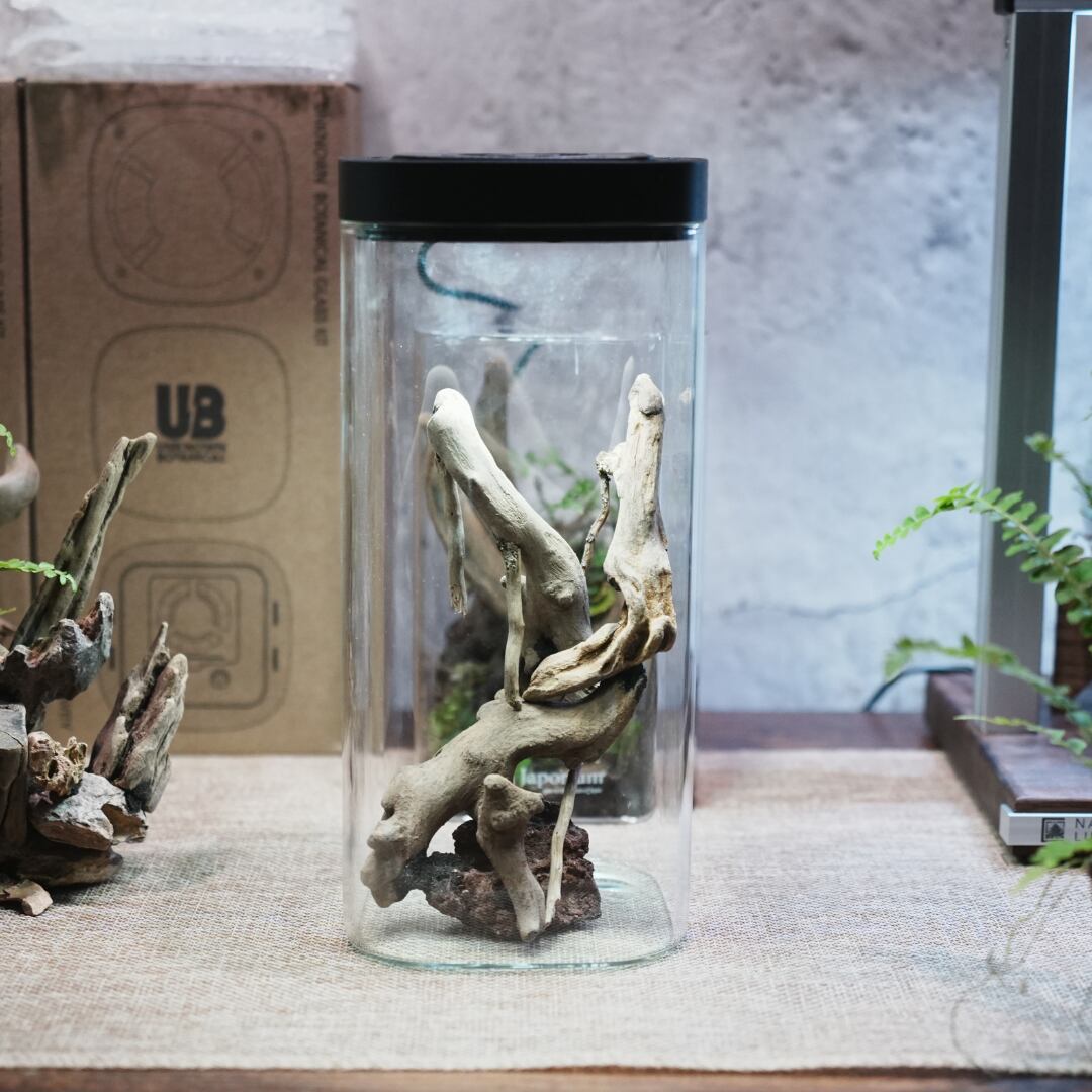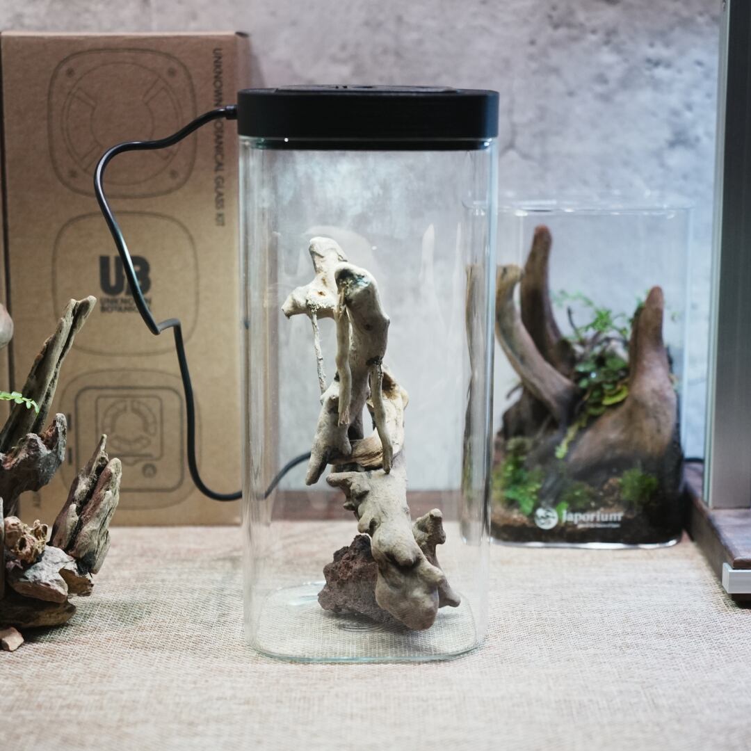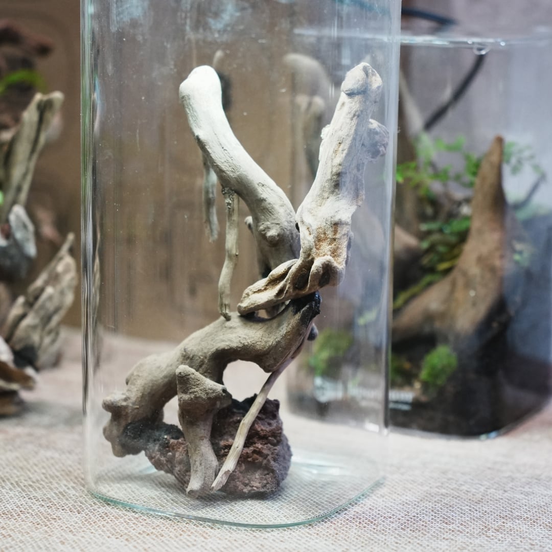 石や流木を組み合わせる手間を省き、グラスに入れるだけで自然な景観のベースが完成します。